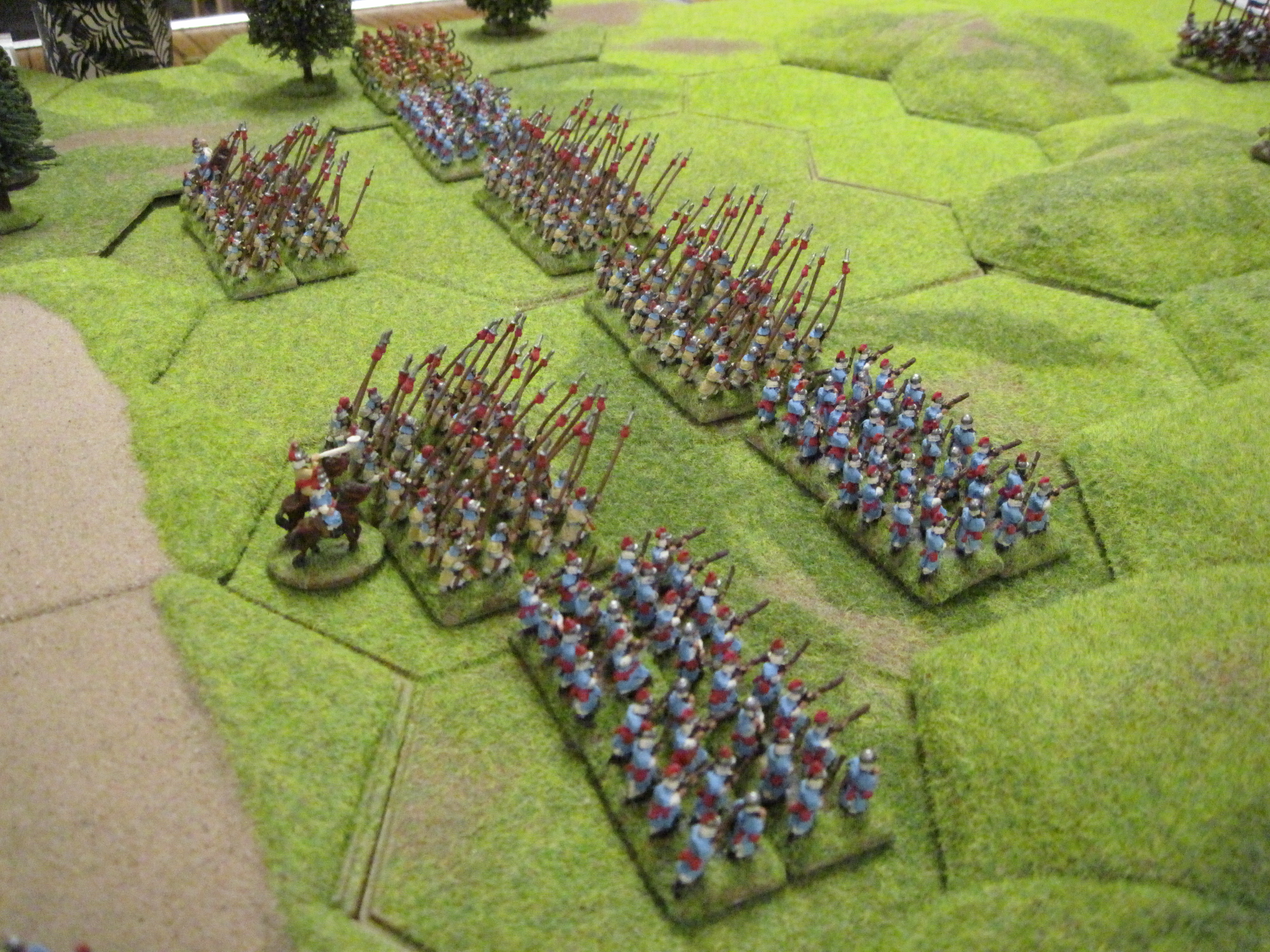 The Yorkist army slowly advances with a line of longbow stretching to the table edge
