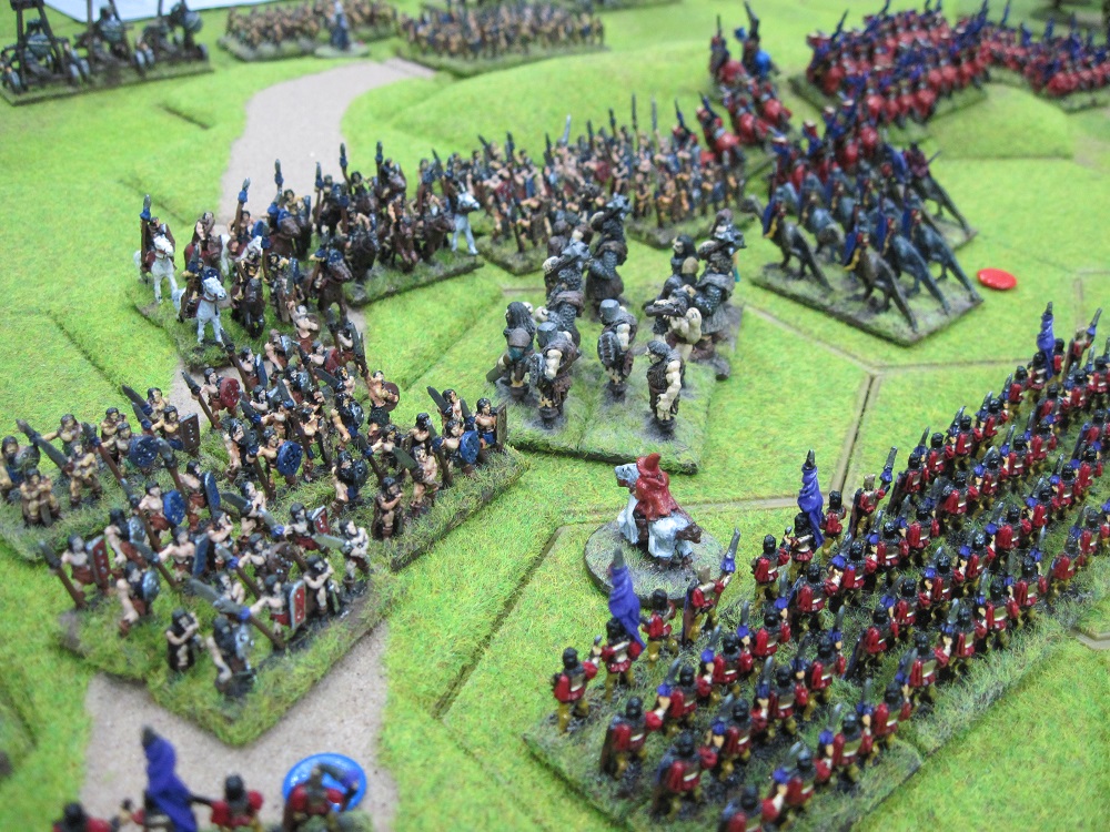 The dice roll for choice of first or second deployment went to Tim and I which gave us the advantage of responding to the Barbarian deployment with our units organised to deliver a specific game plan. However, with one player from each side in a remote location it is impossible to discuss battle plans without communicating this to your opponents as well!