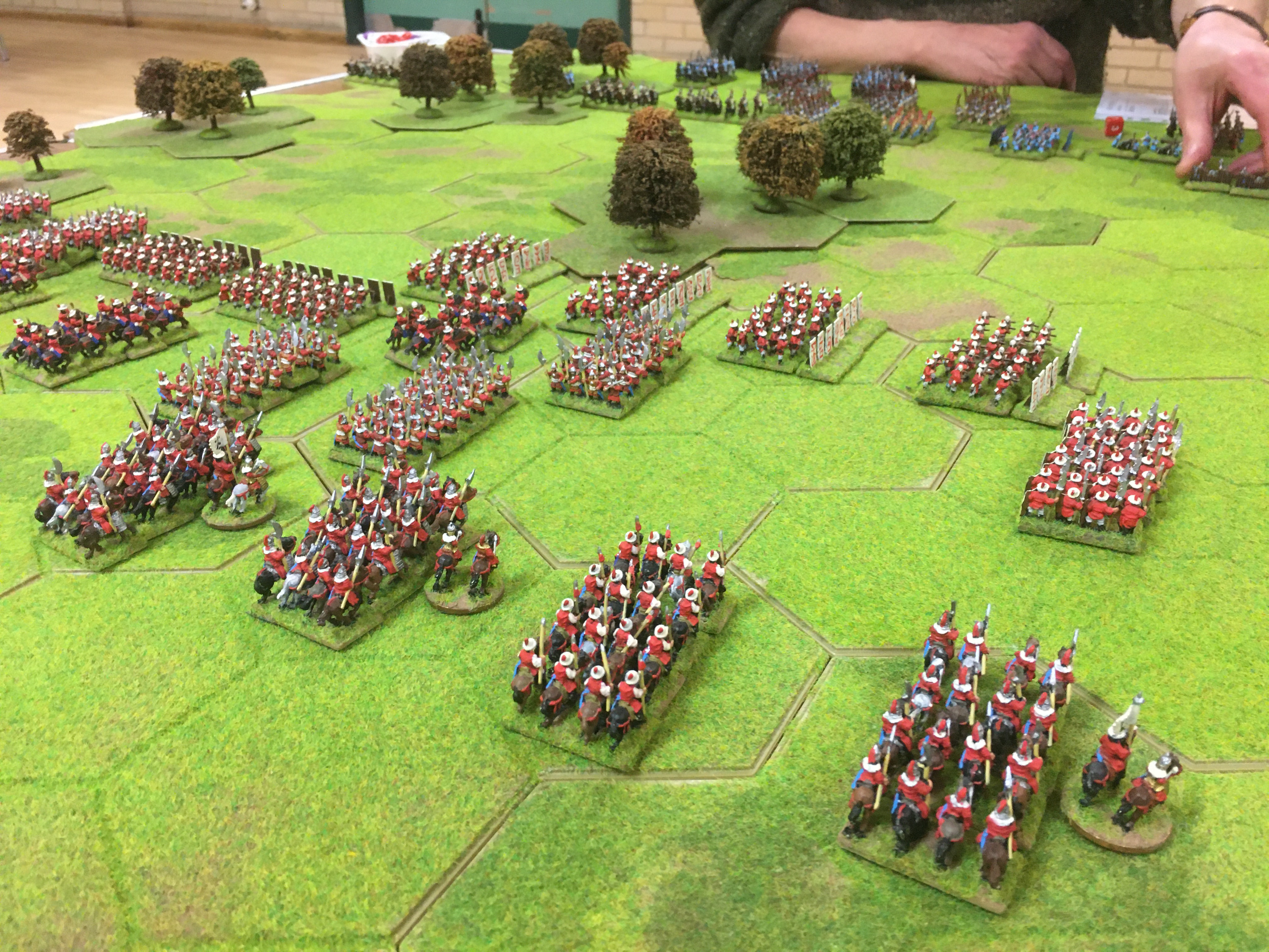 Tim and Tony played to the Korean strengths rather well and fooled me into believing that their cavalry were destined to switch flanks. As a result I failed to commit enough to either flank and dithered too long with my best troops in the centre. Eventually, my Chinese units were whittled down by superior Korean shooting from both infantry and mounted units.