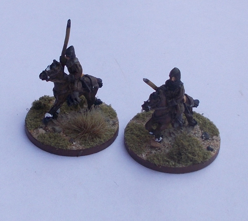 The latest figs, Eowyn, Elven Hero, Morgul Orcs, and some Gondor mounted captains, from the latest 100 year wars fig release and a dying snowmane marker figure.