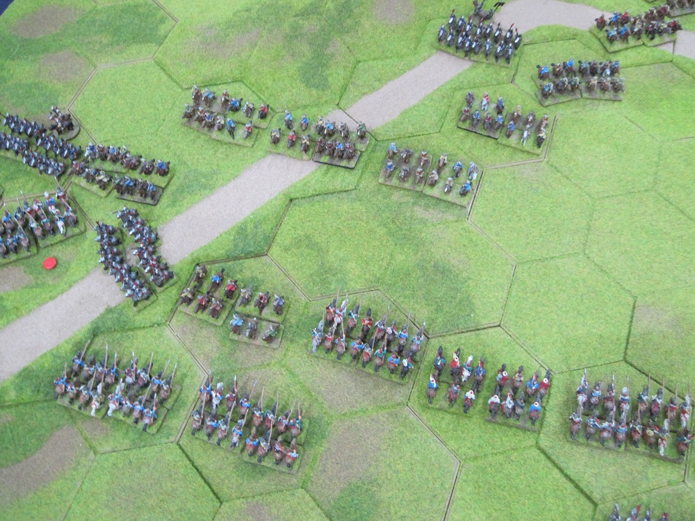 After analysing the previous encounter between these two cavalry armies I re-jigged the battlefield by removing impassable hills small lakes and forests to create a very open battlefield, with gentle slopes and wide plateaus over which both armies could move quickly.