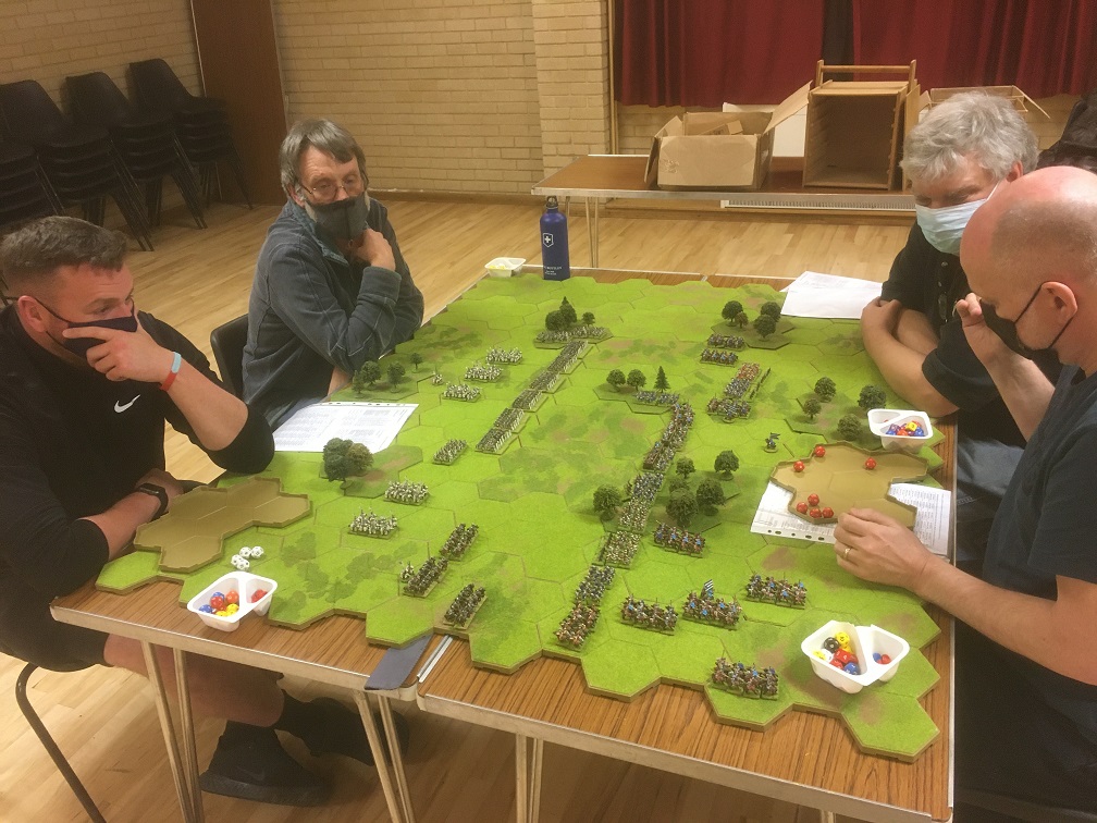The terrain was pretty open in the centre with small areas of woodland dotted around this open ground – ideal heavy cavalry country! Tim and James took generalship of the Teutonic Order and Tony and Chris the Hungarians while I watched from the sidelines.