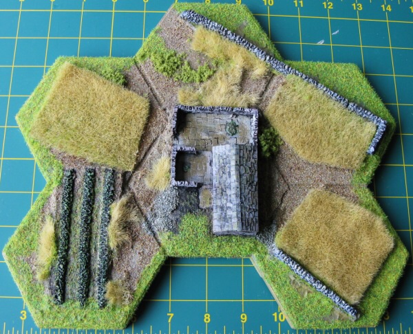 This is an old piece, but I thought it may be of interest in showing a bespoke piece that is easy to make and store. The fields were from some matting that I bought at a show and have never seen since. Everything is just glued onto a blank base and the flock matches the standard ready flocked bases.