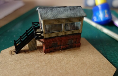 The shots shows the signal box being fixed to the hex tile and the tile 'dressed' with track and a pile of stone chippings.