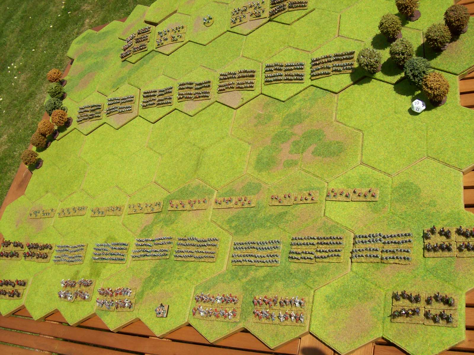 I ignore the command range restrictions on this game as there is only 1 commander per side.