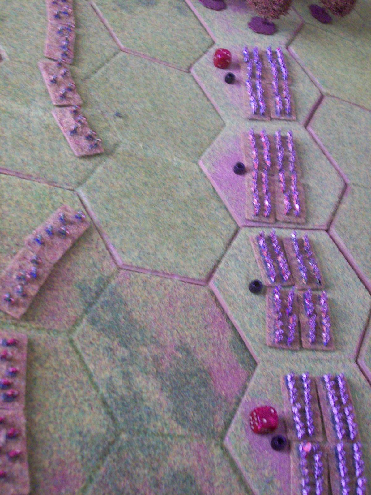 After combat Note lack of black dots on front line depicting shield wall and the Norman cavalry have again gained the ridge routing the Fyrd in he process