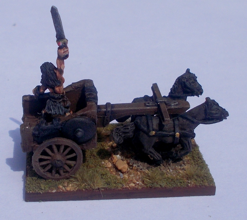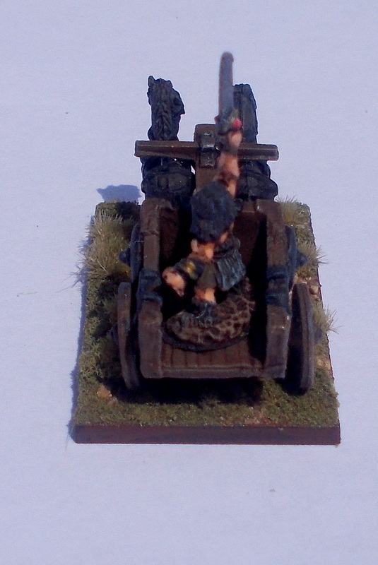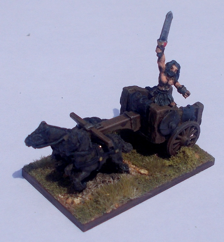 I have used the Barbarian troops from the fantasy range for my Dunlending Troops, first up the artillery and Cavalry