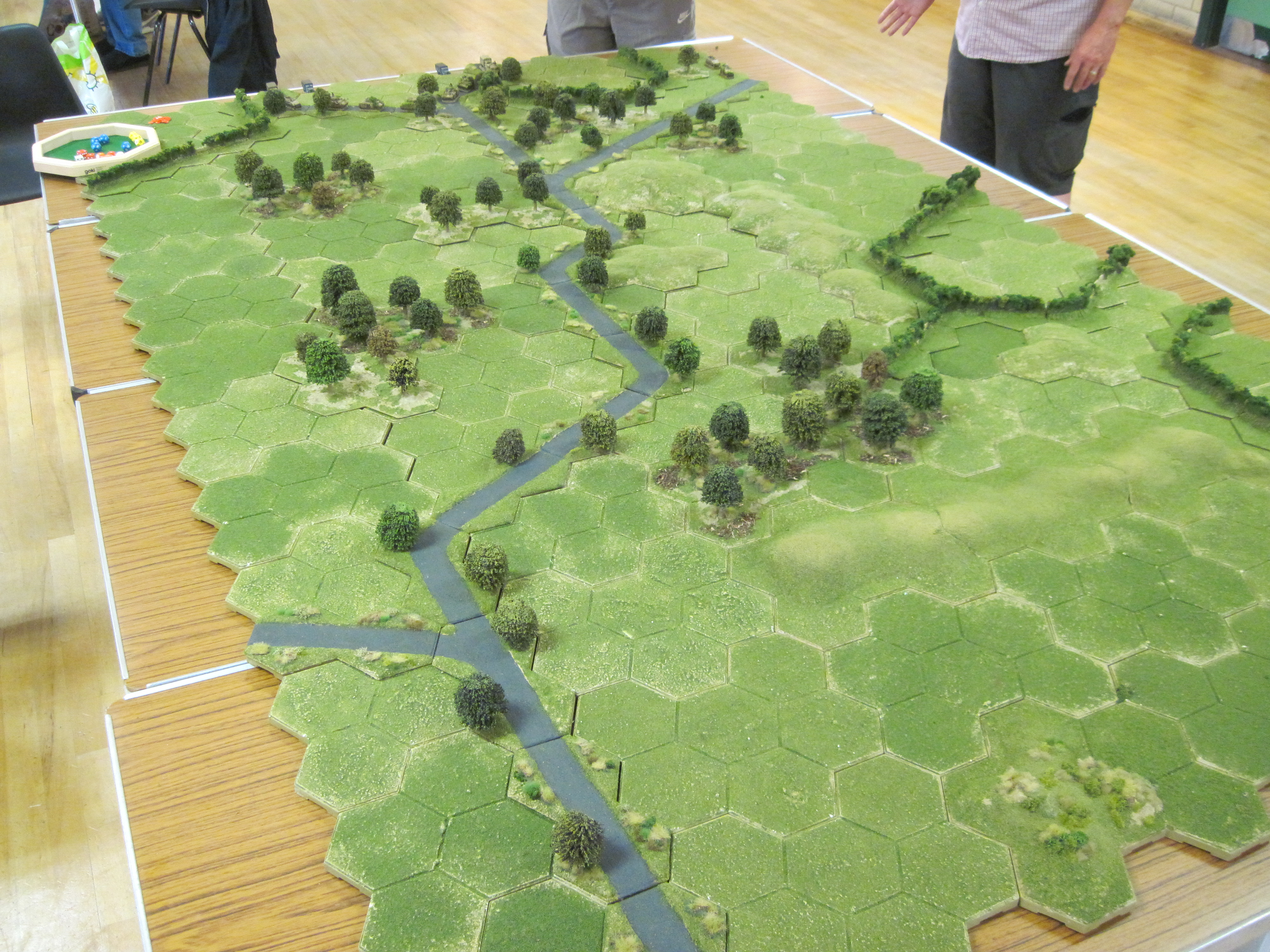 This was a large club game using the hex-based adaptation of the Command Decision WWII rule set with all terrain and miniatures provided by Dave Mack from his extensive collection.