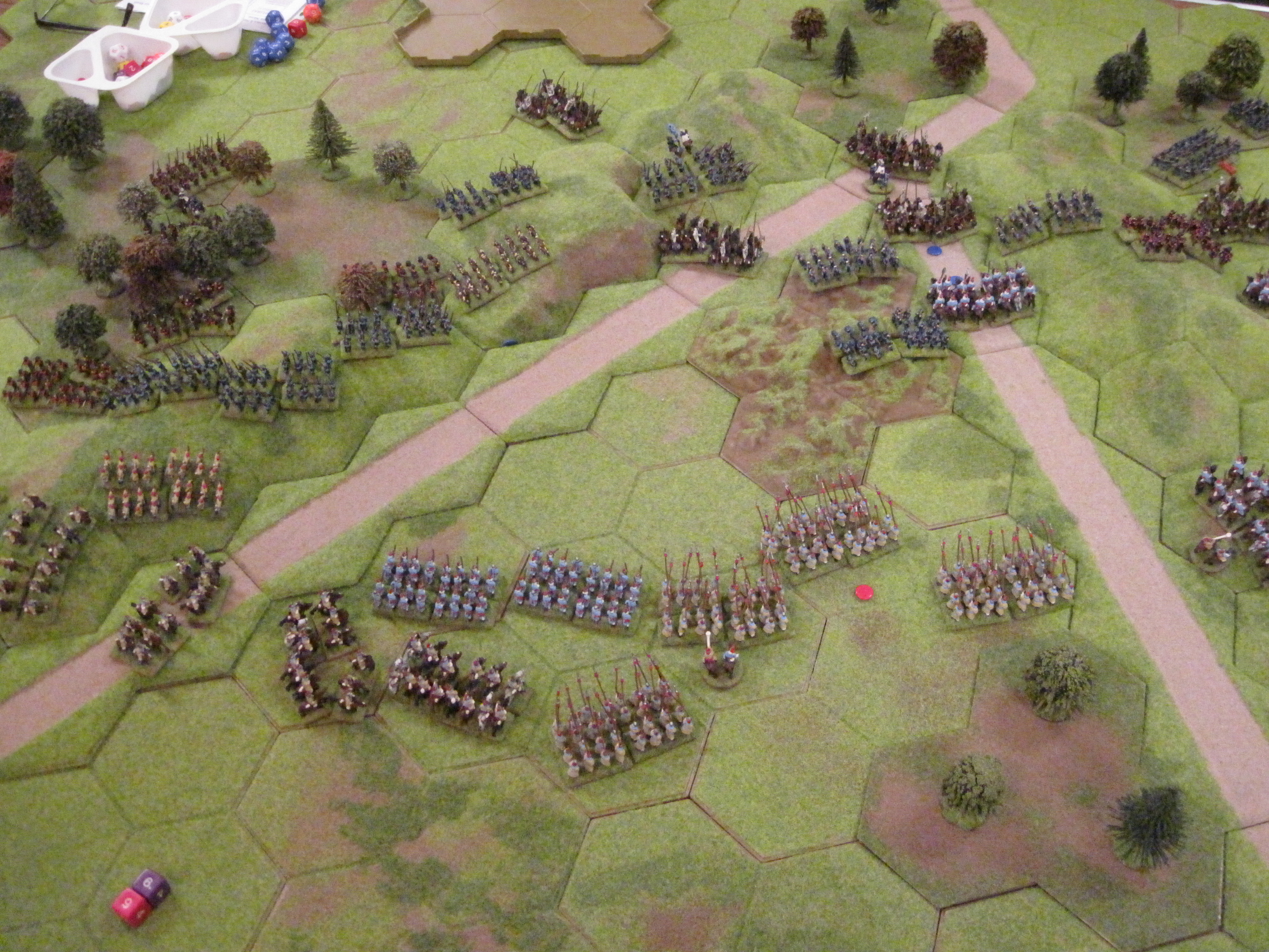 The terrain layout with a significant number of hills and areas of forest was always going to present a challenge to the Korean bow armed cavalry. Once the Korean heavy cavalry had been committed against the Samurai left wing; the more open area of the table, and they were, after an epic struggle defeated, the Samurai win was guaranteed. Such was the terrain that the more numerous ashigaru infantry could always, with the assistance of the woodland hexes, hold and defeat the Korean cavalry. Credit must be given to the Korean commanders who played well when faced with very challenging terrain. Also, Steve’s poor di rolling also didn’t help his Korean heavy cavalry, especially when just a little luck was needed at a key point in the game!