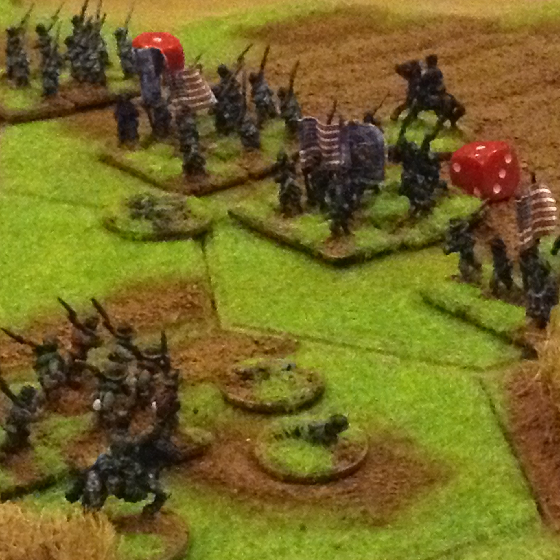 Selection of photos of a second game for the Yankies and Rebs to fight it out, now all based and flocked with command figures. Ended with a fair draw with heavy losses on both sides, the foremost brigades suffering withering fire with exchanges of volleys at close ranges with casualties of 60%. The Union guns suffered poor dice roles which gave the Rebs a better result overall. Burnside.