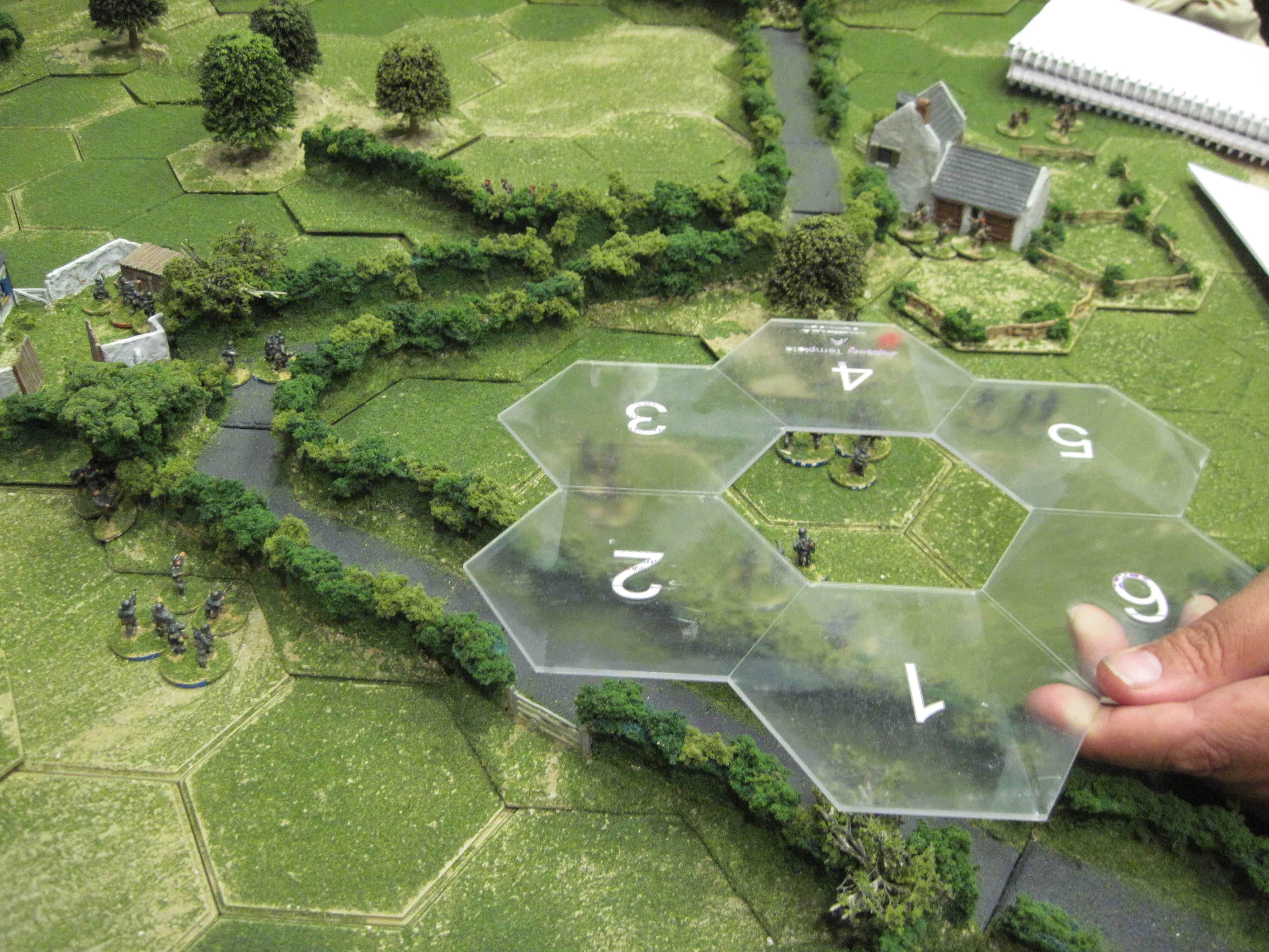 The British sections were beginning to take notable casualties and the Germans advanced to take up a firing position with the aim of assaulting and taking the right-hand hamlet. Again, the British mortars proved ineffective and the Germans won the firefight for the hamlet, inflicting heavy casualties and forcing the defenders to retreat. This hamlet would soon be occupied by the German rifle section giving them the victory.