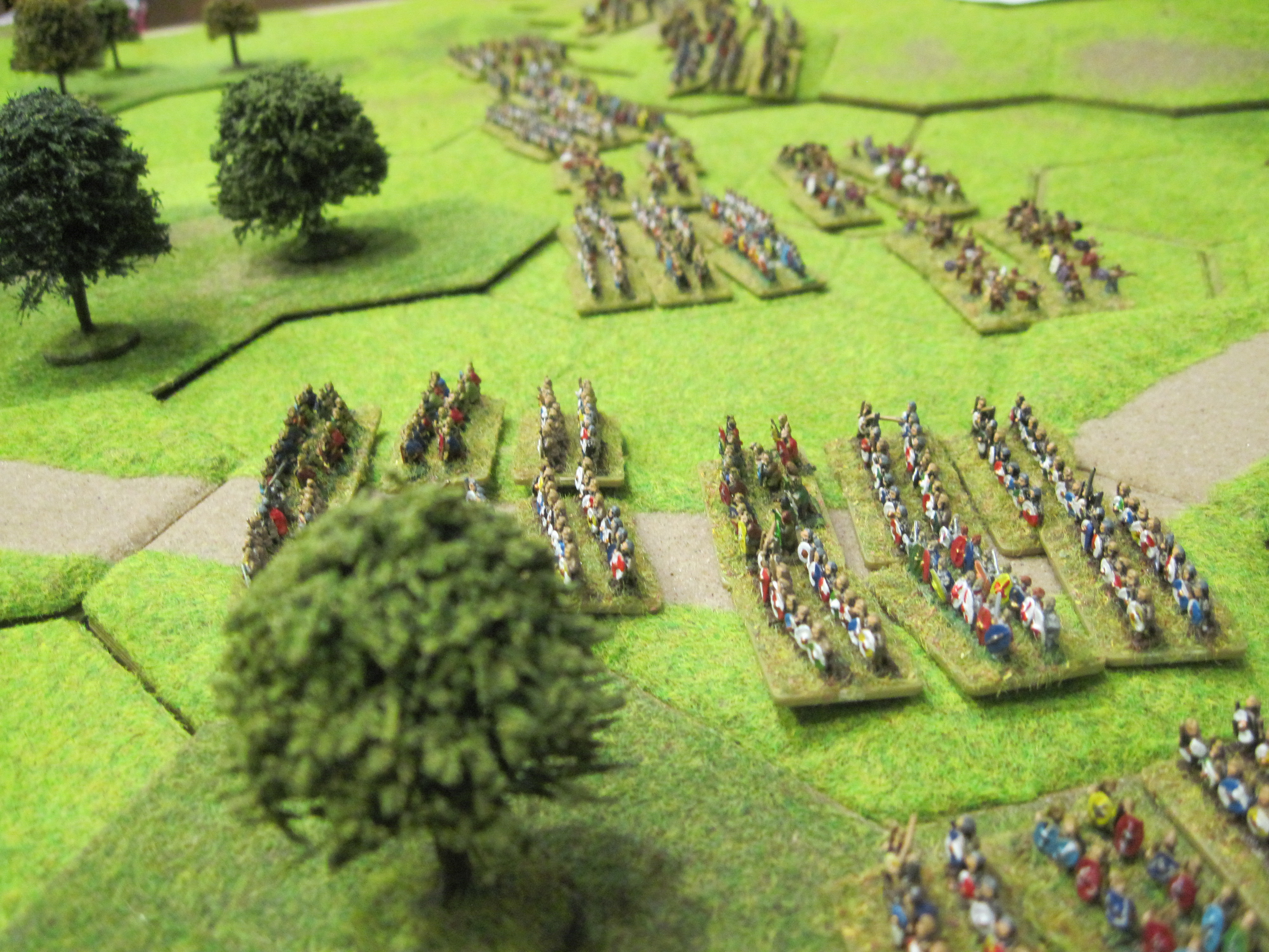This was a very close and fascinating game which could have been won by either side at different stages. After initial Roman success and heavy Gallic losses, the defeat of the Roman cavalry heralded a gradual fight back. The loss of 2 Roman generals enabled the Gauls to commit more of their generals into later attacks and combats which eventually forced the Romans backwards resulting in their eventual defeat.