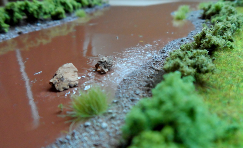 Very nice, I have just bought some Woodland Scenics 'water' effect, so will try that. The escarpment looks superb and I am guessing that the cork still keeps the hill light.