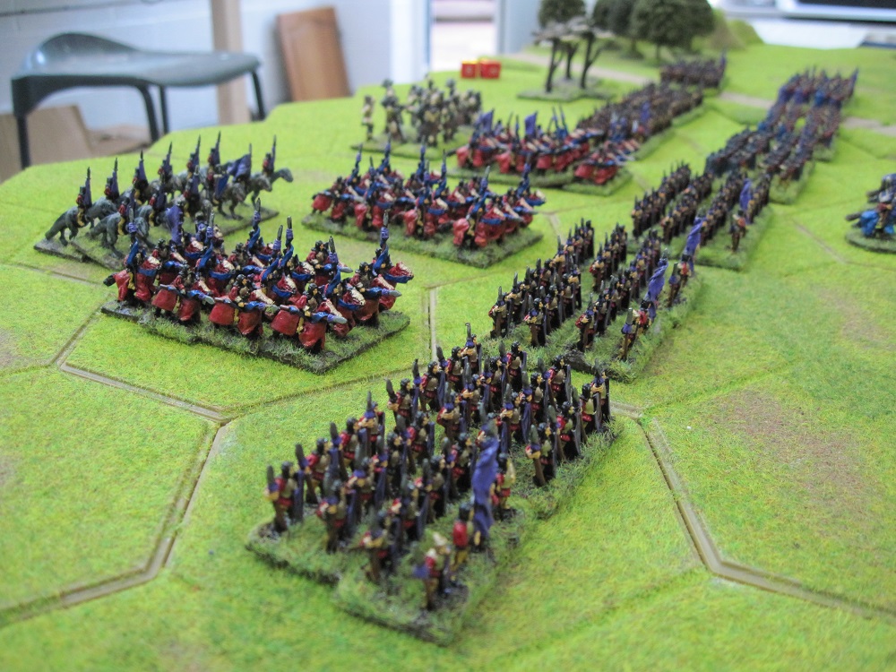 The dice roll for choice of first or second deployment went to Tim and I which gave us the advantage of responding to the Barbarian deployment with our units organised to deliver a specific game plan. However, with one player from each side in a remote location it is impossible to discuss battle plans without communicating this to your opponents as well!