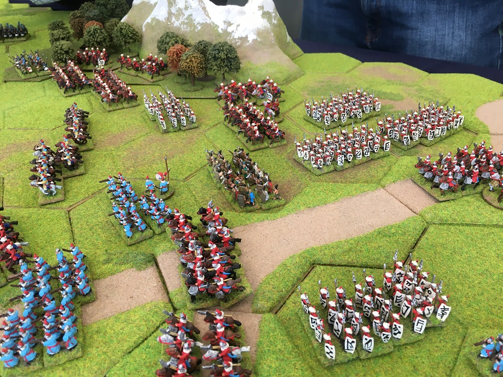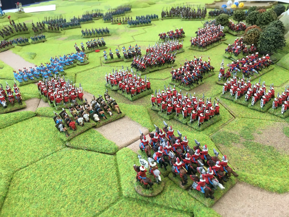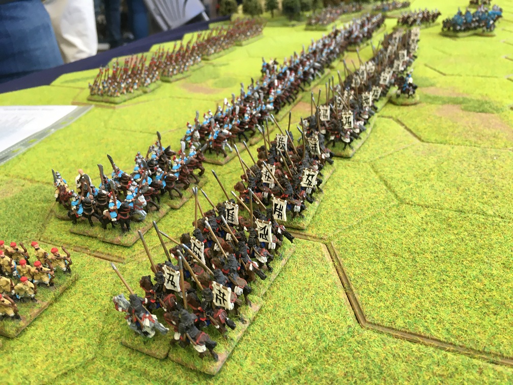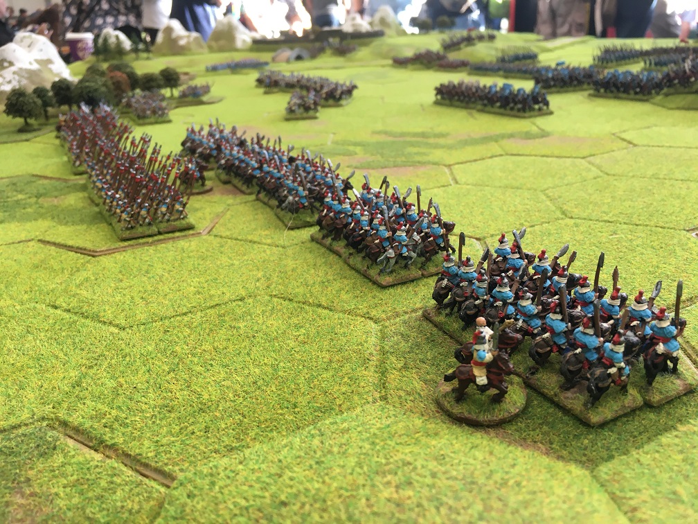 The Samurai army under the command of Dave Mac advanced towards Tim’s Korean cavalry which resulted in a cavalry on cavalry encounter. The Korean militia and spear units were held in reserve along with the Korean handgunners and militia holding the fort guarding the pass through which the Ming army was expected to arrive.