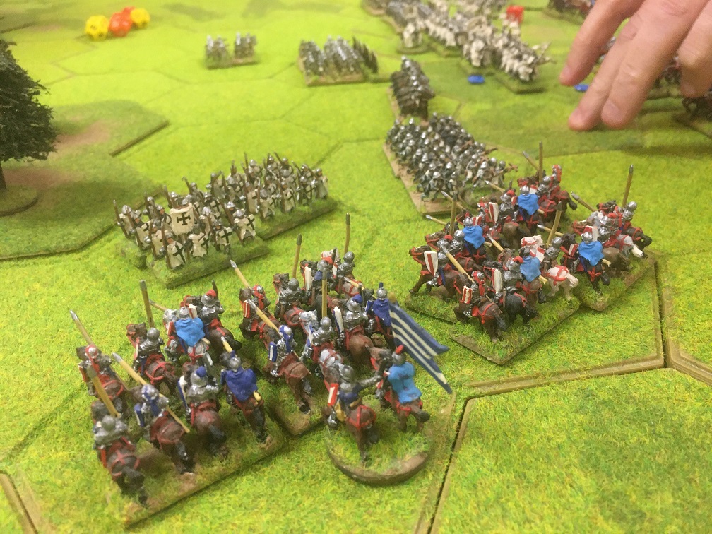 The epic cavalry engagement went in favour of the Hungarians, really because the good shooting of the stubborn Hungarian infantry enabled the Hungarian cavalry to get the mass charge into the centre of the Teutonic army. And, at this point of the game the Teutonic knights where already split into 2 separate groups of heavy cavalry and therefore unable to act as one body.