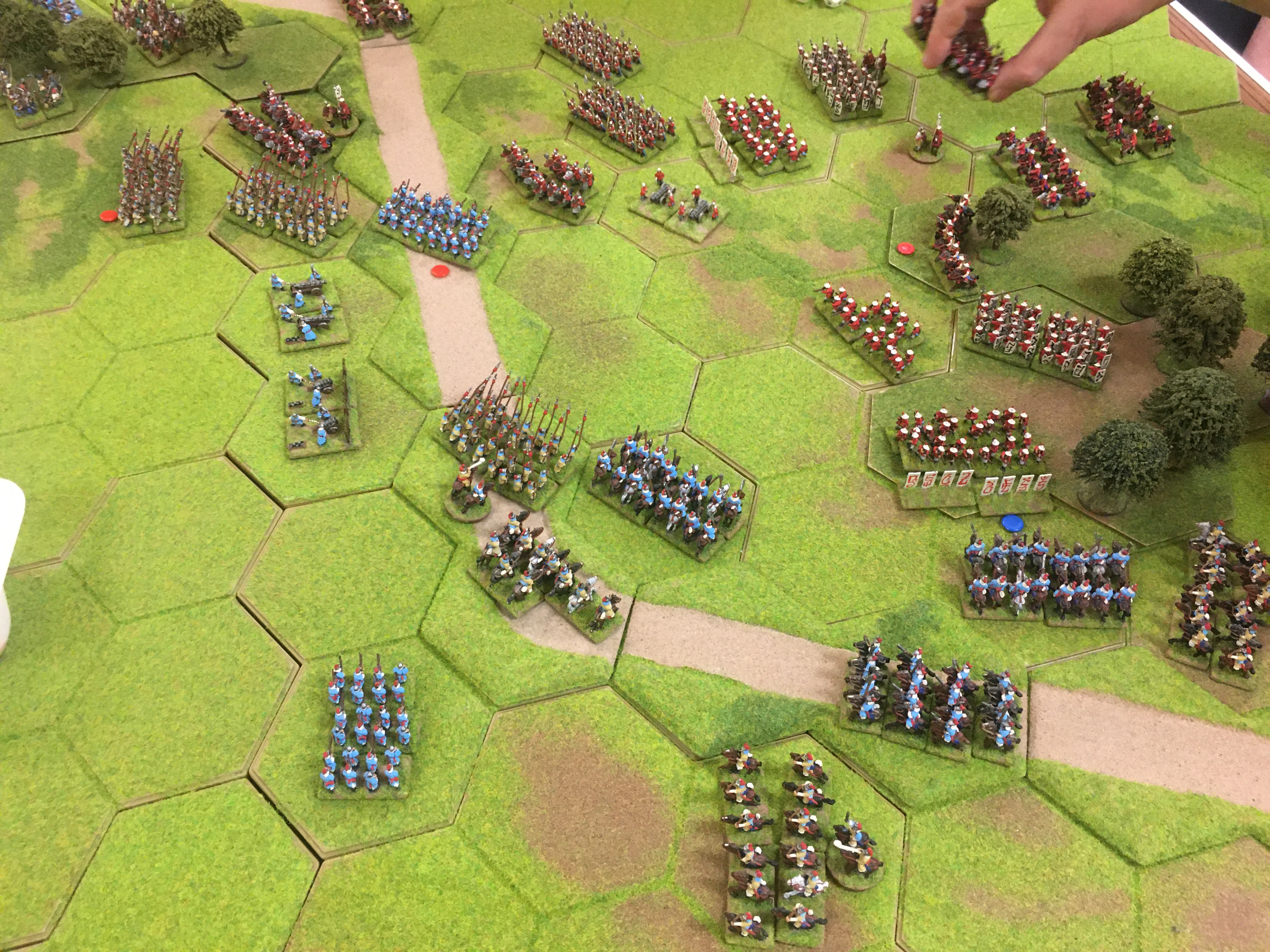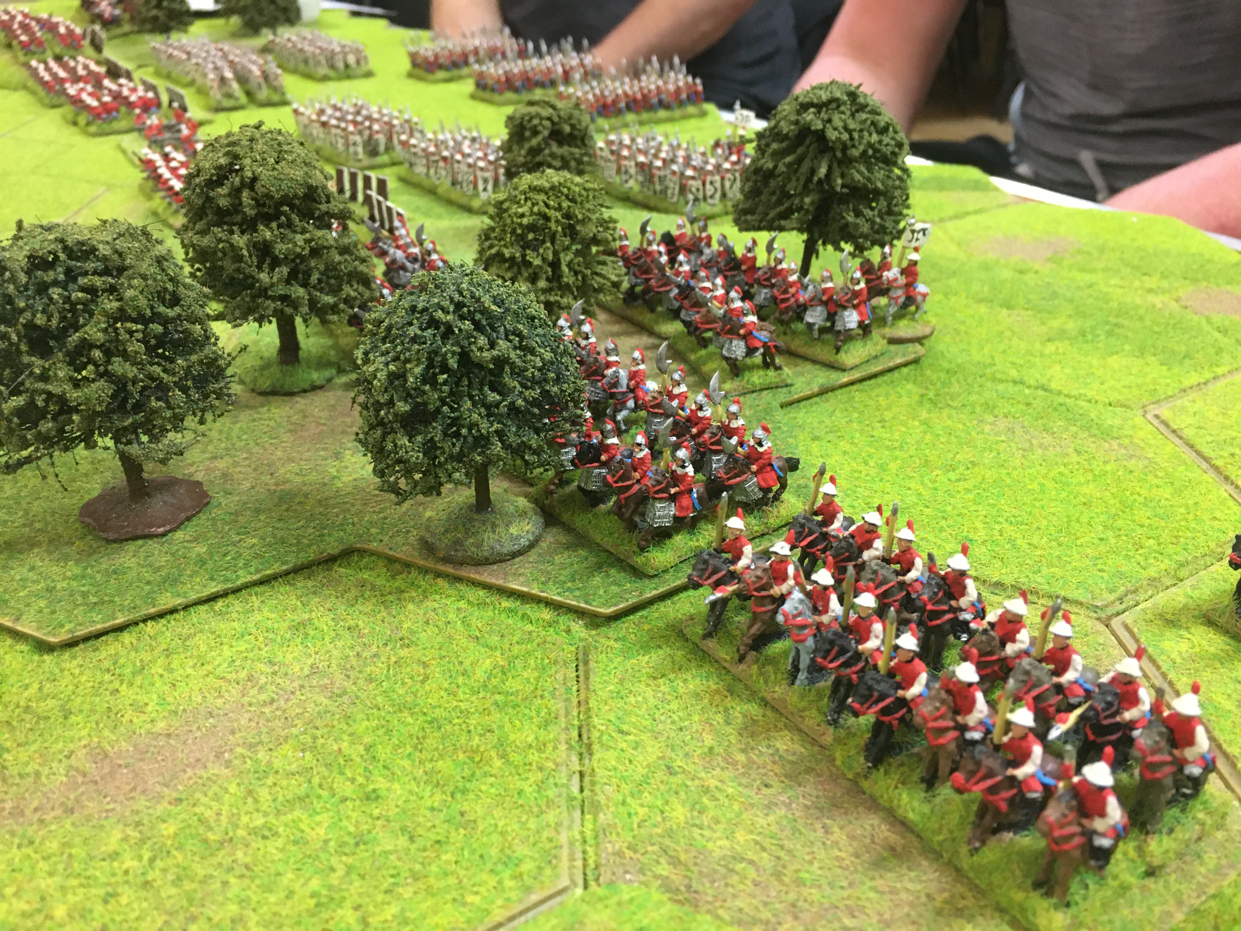 At least James was still holding Chris back on the other wing, until that is, the Chinese breakthrough in the centre left him exposed as well ! They were all waiting for ‘the cavalry’ to arrive to save them! Unfortunately the useless Korean cavalry commander (me!) had been played like a violin by Tony, who had played an excellent psychological game and effectively pinned my cavalry out of position.