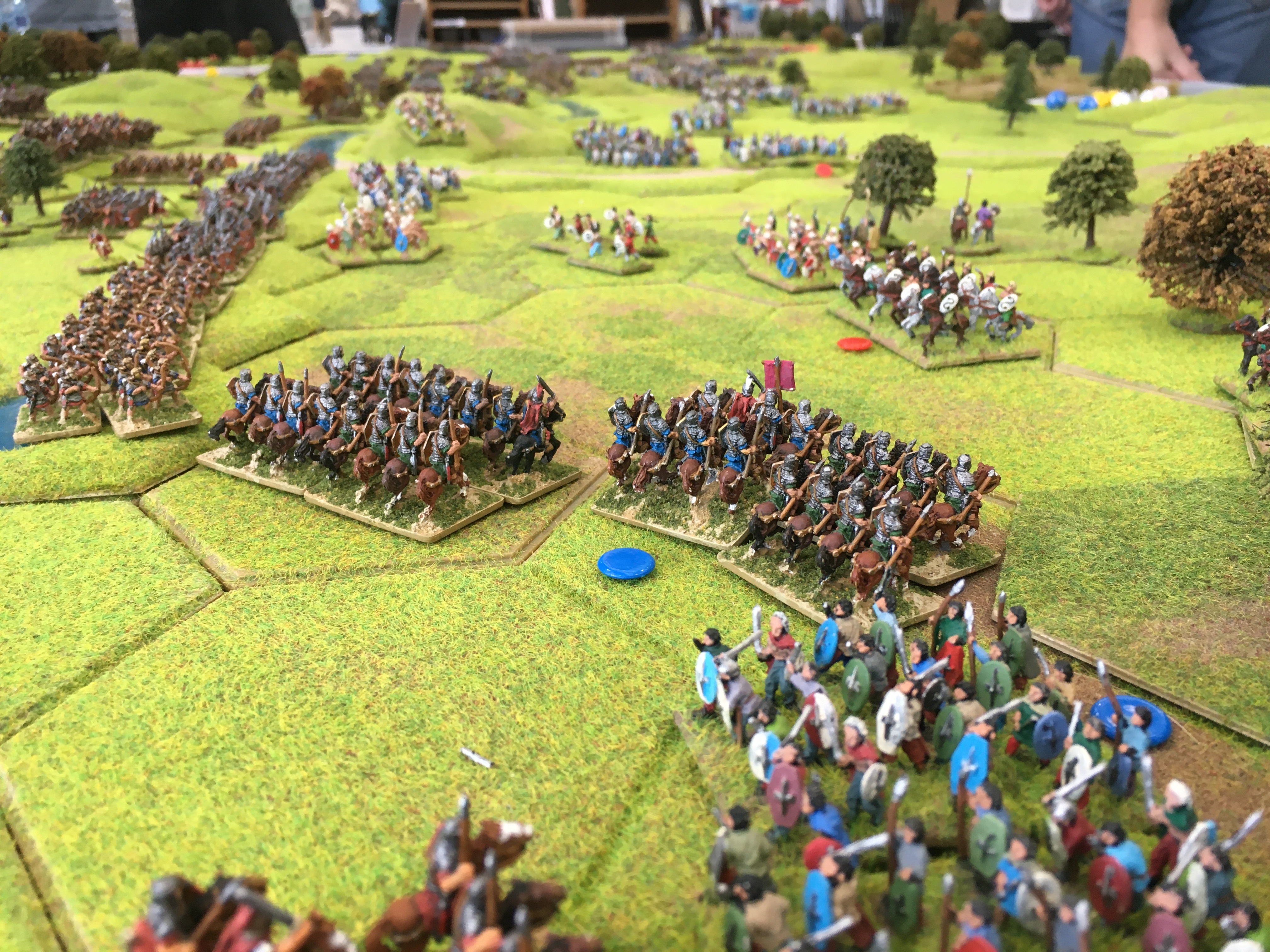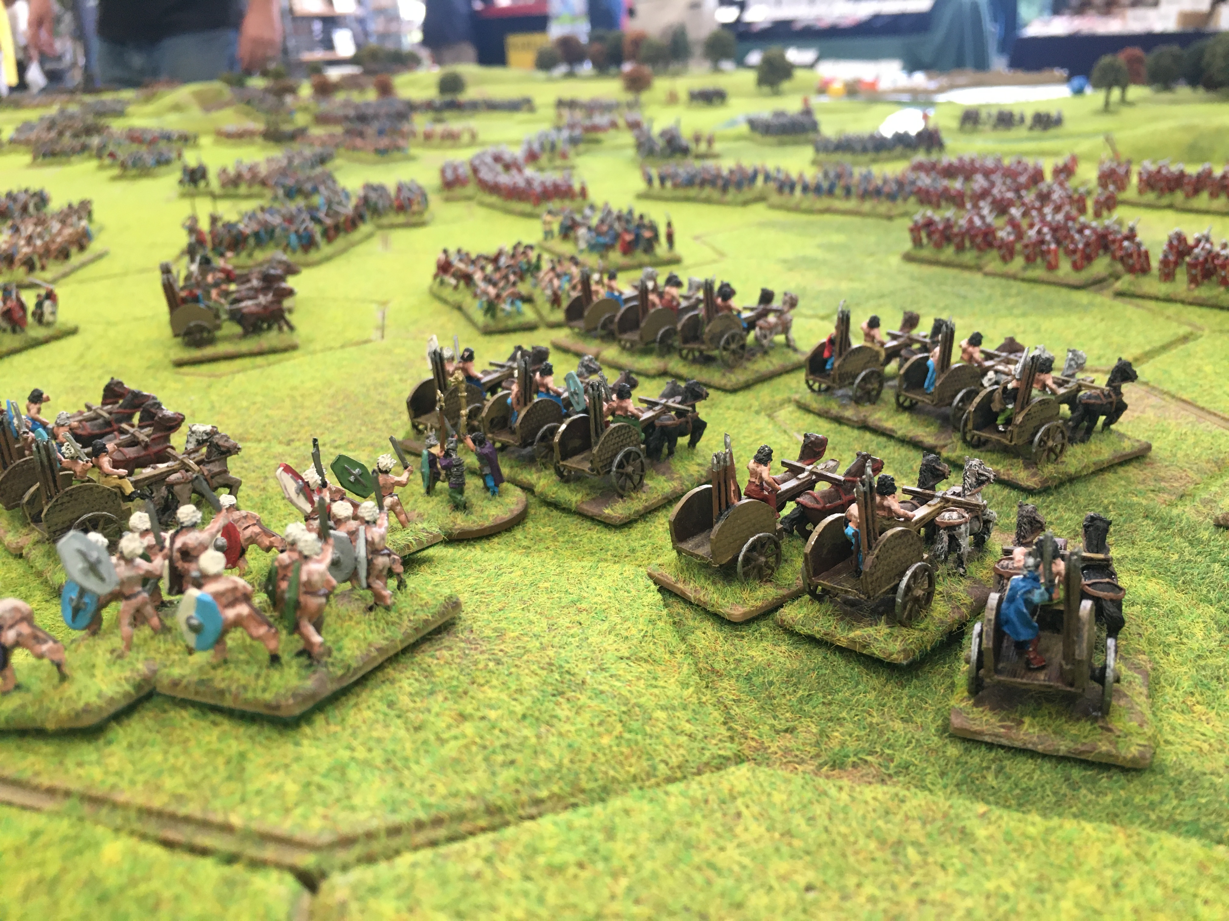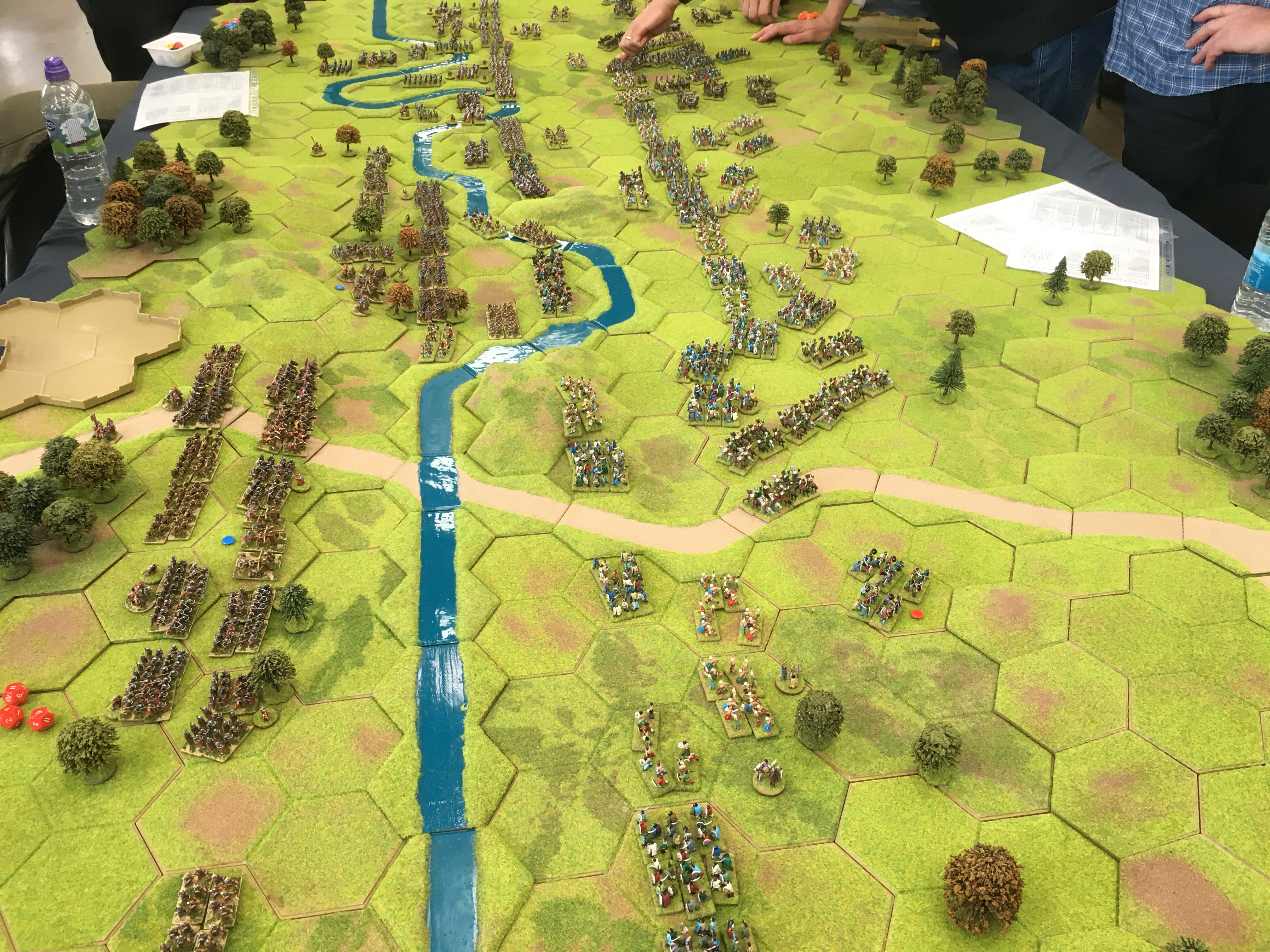 Roman cavalry and light cavalry units then crossed the extreme northern part of the river which forced the British to commit light cavalry units to the opposite end of the table. This was soon followed by the start of a general Roman advance to and across the river across the width of the board. By mid afternoon despite a number of local successes the battle of attrition was being decidedly won by the Romans. Gradually more and more legionary units established their lines along the west bank of the Medway.