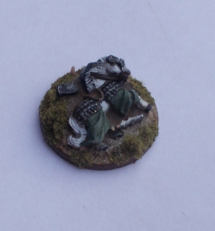 The latest figs, Eowyn, Elven Hero, Morgul Orcs, and some Gondor mounted captains, from the latest 100 year wars fig release and a dying snowmane marker figure.