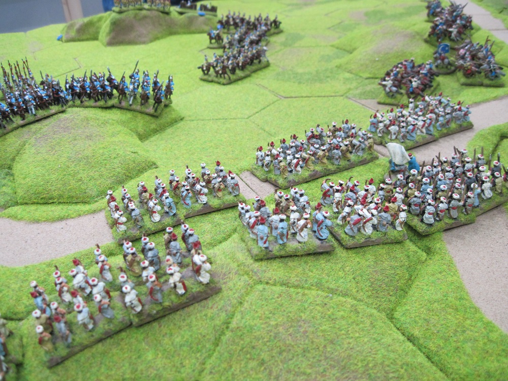Tim and I decided to take the opportunity to advance our cavalry and engage in a shooting match with the now diminished opposition. This is when I made my first major blunder of the game; instead of committing all 7 units of Ottoman cavalry I only committed 6. I kept one unit of Siphis medium cavalry back to offer mobile support to our infantry in our centre and left – this turned out to be a massive error of judgment!