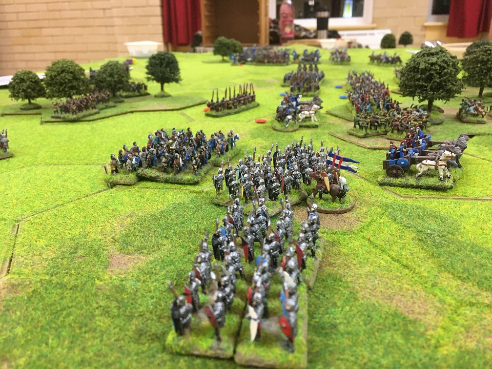 The Norman cavalry would need to be defeated quickly in order that what was left of my forces could come across to support Chris. Unfortunately for us, Tony’s cavalry was incredibly stubborn and as each game turn ticked away the Norman victory looked more certain.