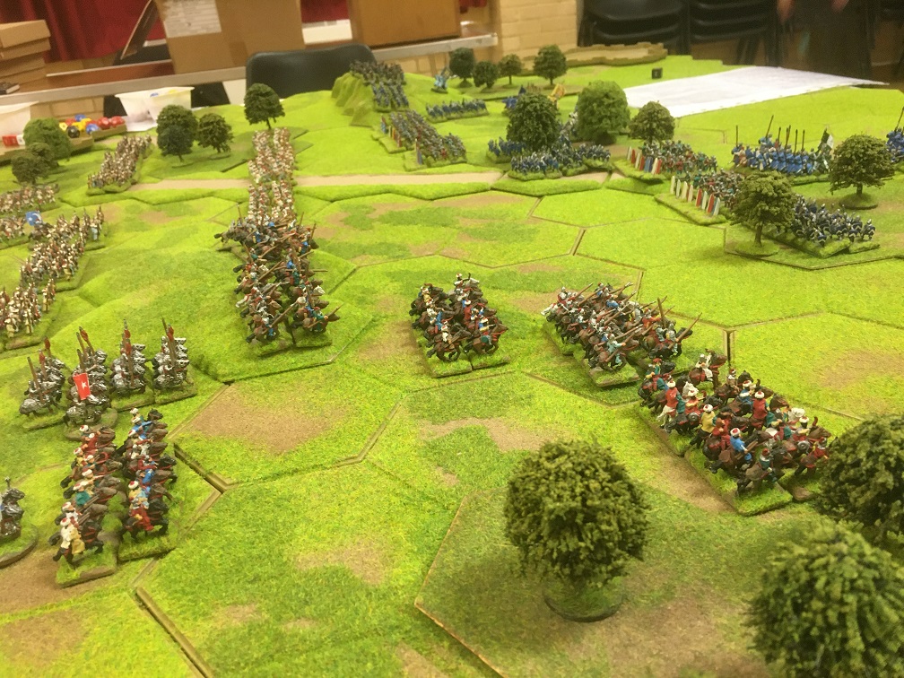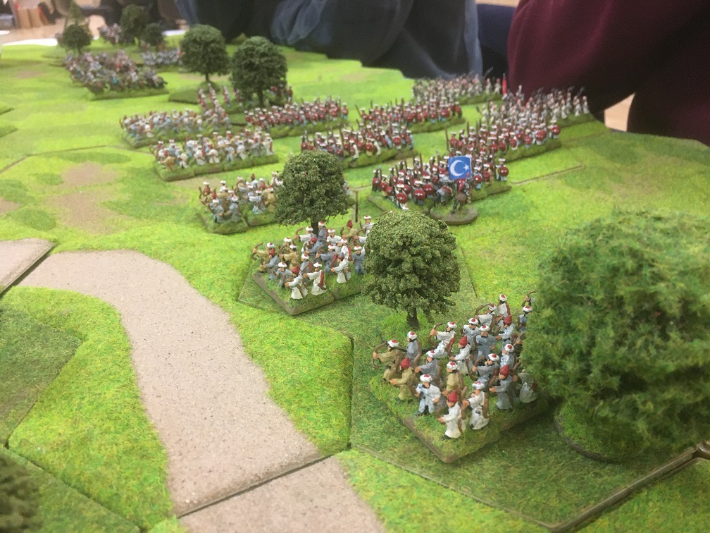 The French army used the terrain advantage to help neutralise the Ottoman bow armed cavalry and eventually won the game by getting more units into local combats more quickly than the Ottomans which were hampered throughout the game by quite poor shooting. If they had been to ‘Specsavers’ it might have been a different outcome.