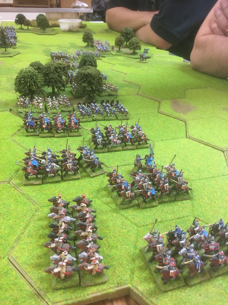 The epic cavalry engagement went in favour of the Hungarians, really because the good shooting of the stubborn Hungarian infantry enabled the Hungarian cavalry to get the mass charge into the centre of the Teutonic army. And, at this point of the game the Teutonic knights where already split into 2 separate groups of heavy cavalry and therefore unable to act as one body.