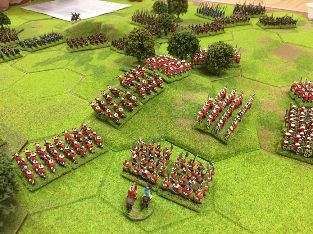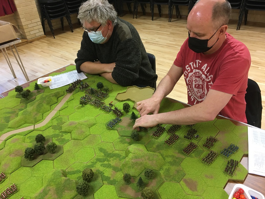 This club game was always going to be a brain teaser in that the terrain layout which was chosen before the armies were allocated to the players was always going to dictate the course of the game. The scattering of 3 and 4 hex areas of woodland and the rolling landscape created by the numerous hills and escarpments was not going to enable the two lines armies to face-off against each other in the centre. The dice dictated the Tony and Chris took the Samurai and James and I the Chinese and the dice then gave the Samurai choice of table edge, second deployment and first move – the omens were not good right from the start.