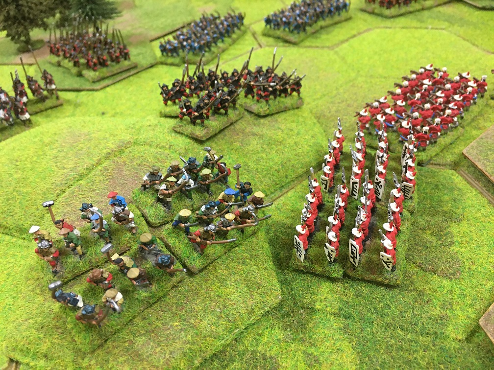 Meanwhile James was engaged in a shooting match between his Chinese crossbow and the ashigaru handgunners. His main enemy turned out to be his shooting dice which constantly failed to deliver any results throughout the game.