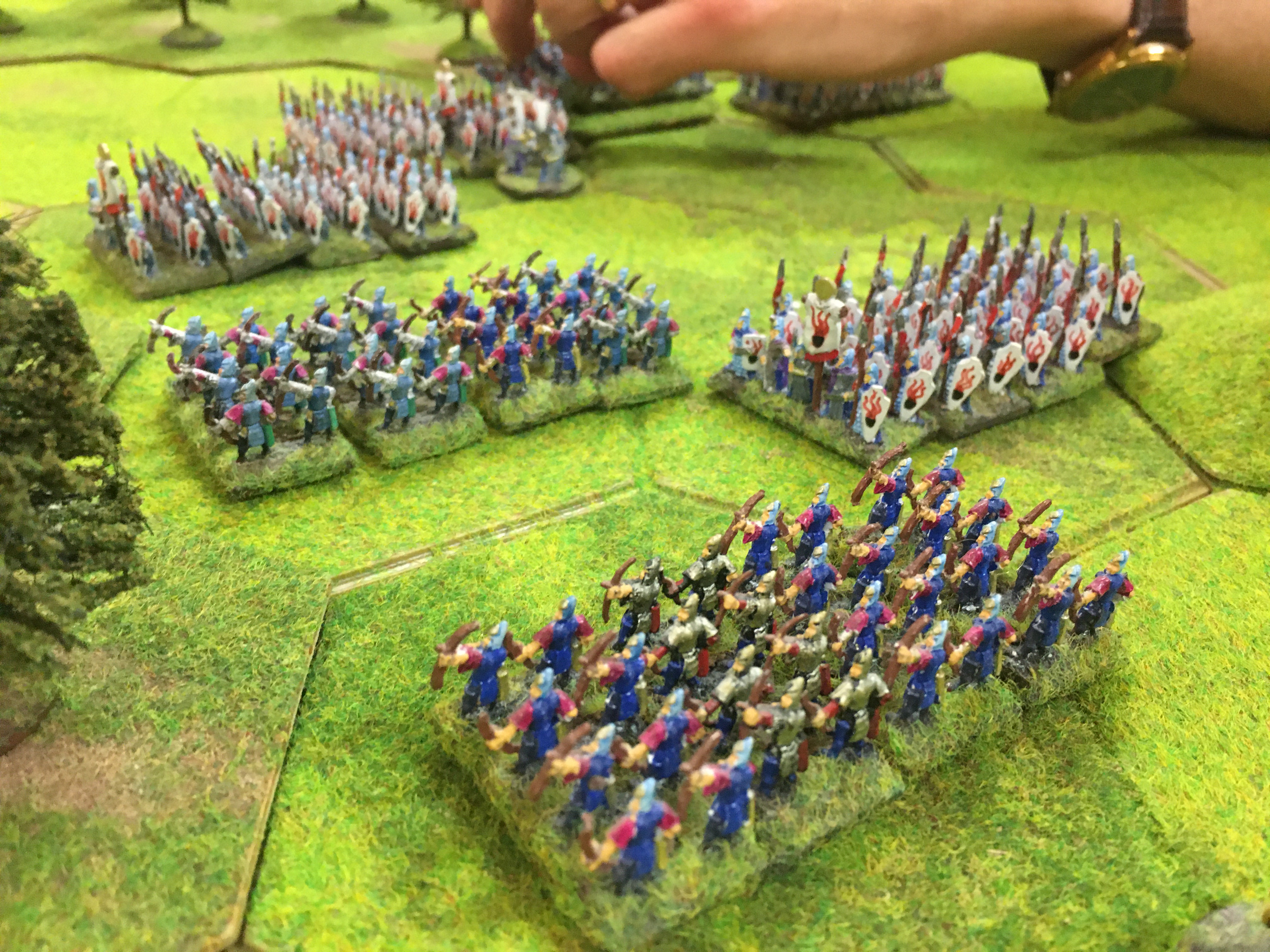 This game was best described as semi-organised chaos in which the roll of the dice pushed and pulled the fortunes of both sides in all directions throughout. A barbarian victory? Erm, I don’t think either side had more than a third of their army on the table at the conclusion of the game, but it was certainly entertaining!