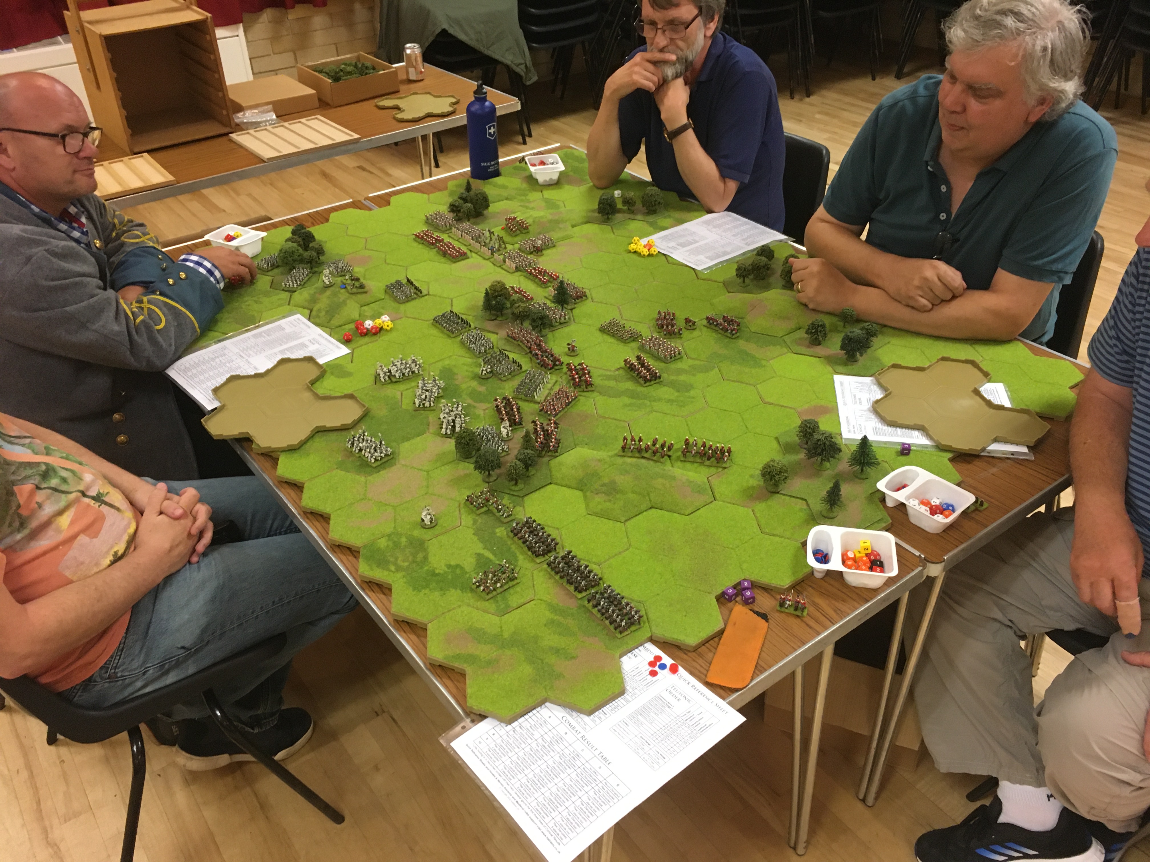 Tim and Tony kept the initiative with their Chinese throughout most of the game and their fight to control the central 3 hex woodland proved decisive. Our Teutonic army was never given the opportunity to use the mass charge of the knights and was strategically whittled down by sound Chinese tactics.