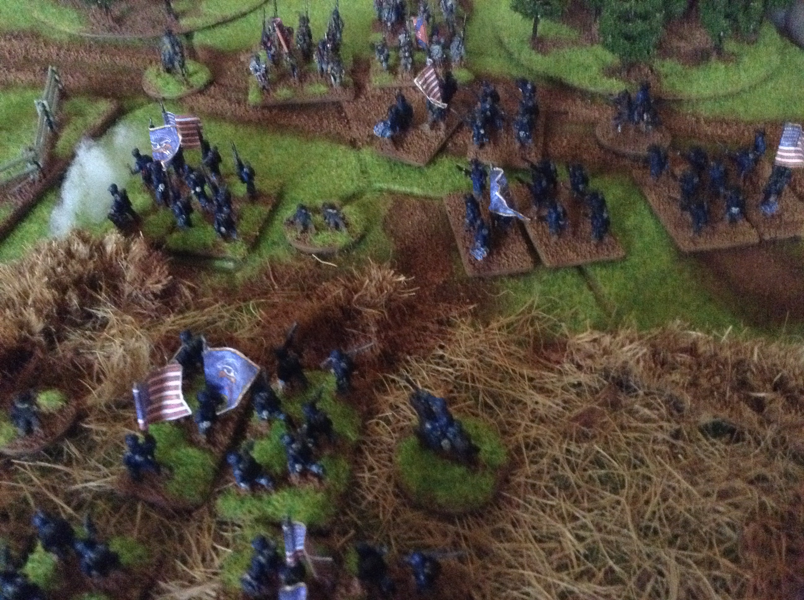 My best intentions were to set a project to refight various engagements of the Civil War on the actual date (s) of the battles. So far I've managed a few. The first outing for my figures was last year on the anniversary of Antietam 17th September, with a Cornfield based wargame. This year I set myself the time to have another go, this time with extended collection. Unfortunately due to other commitments the military logistics were complicated and I failed. So have a delayed report with the battle one week late!