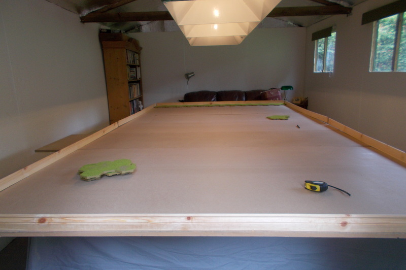 Here is the finished gaming table ready for the Hexon treatment. 14ft x 7ft or 8 hexon tiles wide (24 Hexes) by 21 tiles long (42 Hexes)